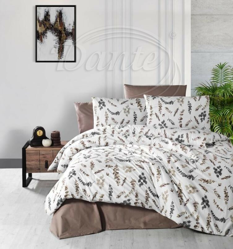 - Luxusní flanelové povlečení v bílé barvě zdobené větvičkami v hnědé a šedé barvě.