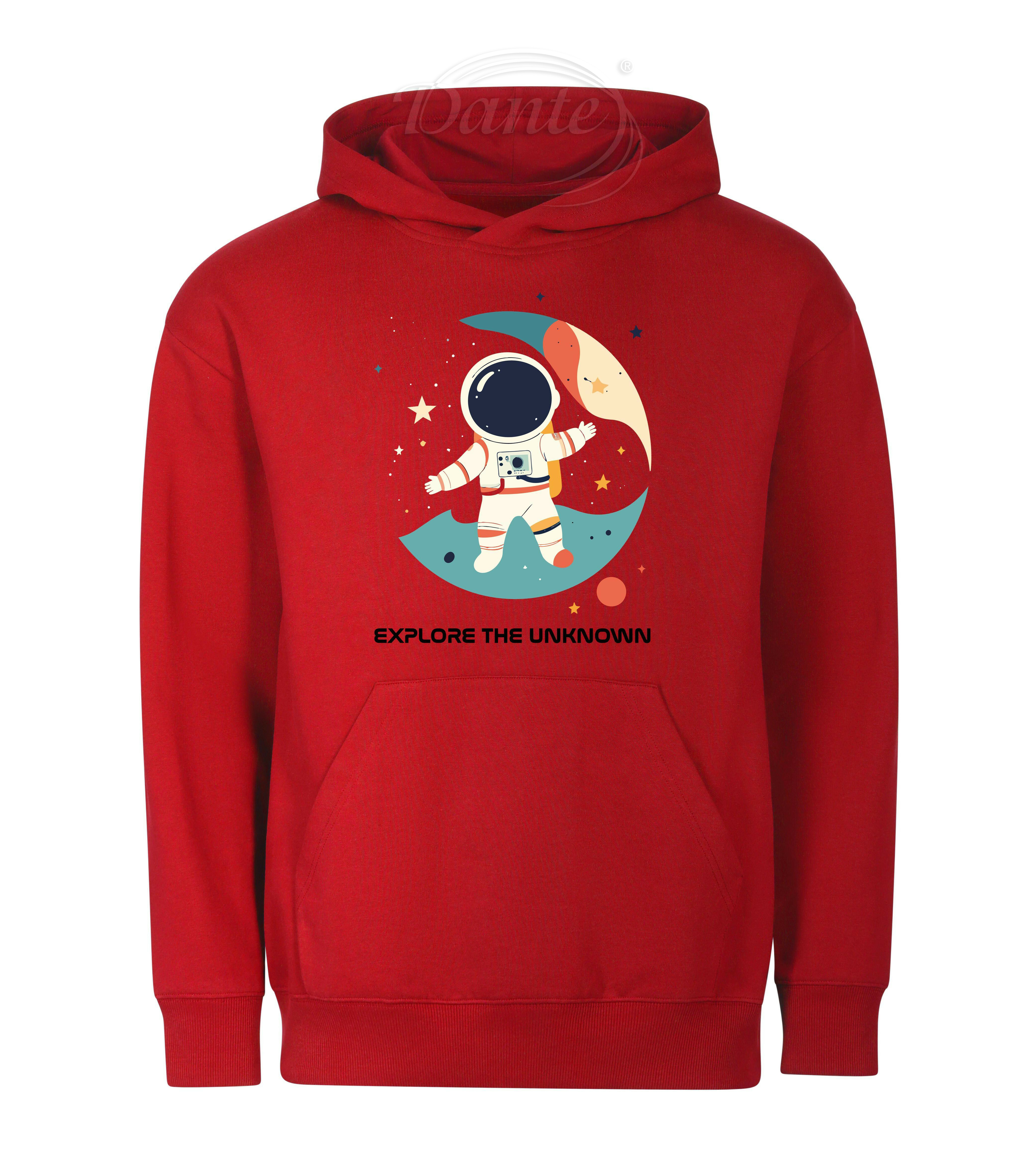 Mikina unisex červená Astronaut Explore the Unknown černý text