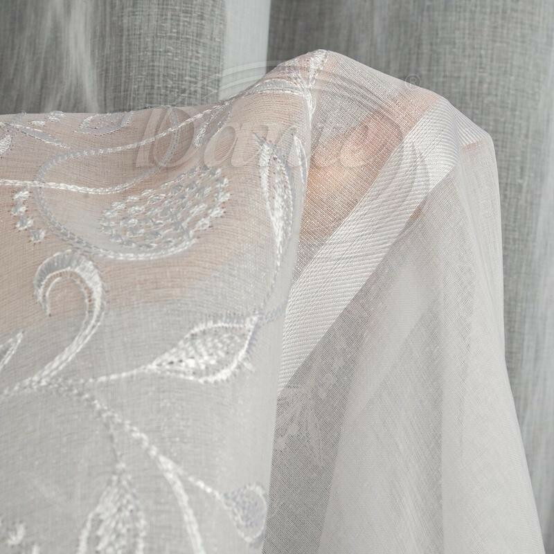 - Hladká bílá vyšívaná záclona zaujme svým elegantním a jemně dekorativním vzhledem.