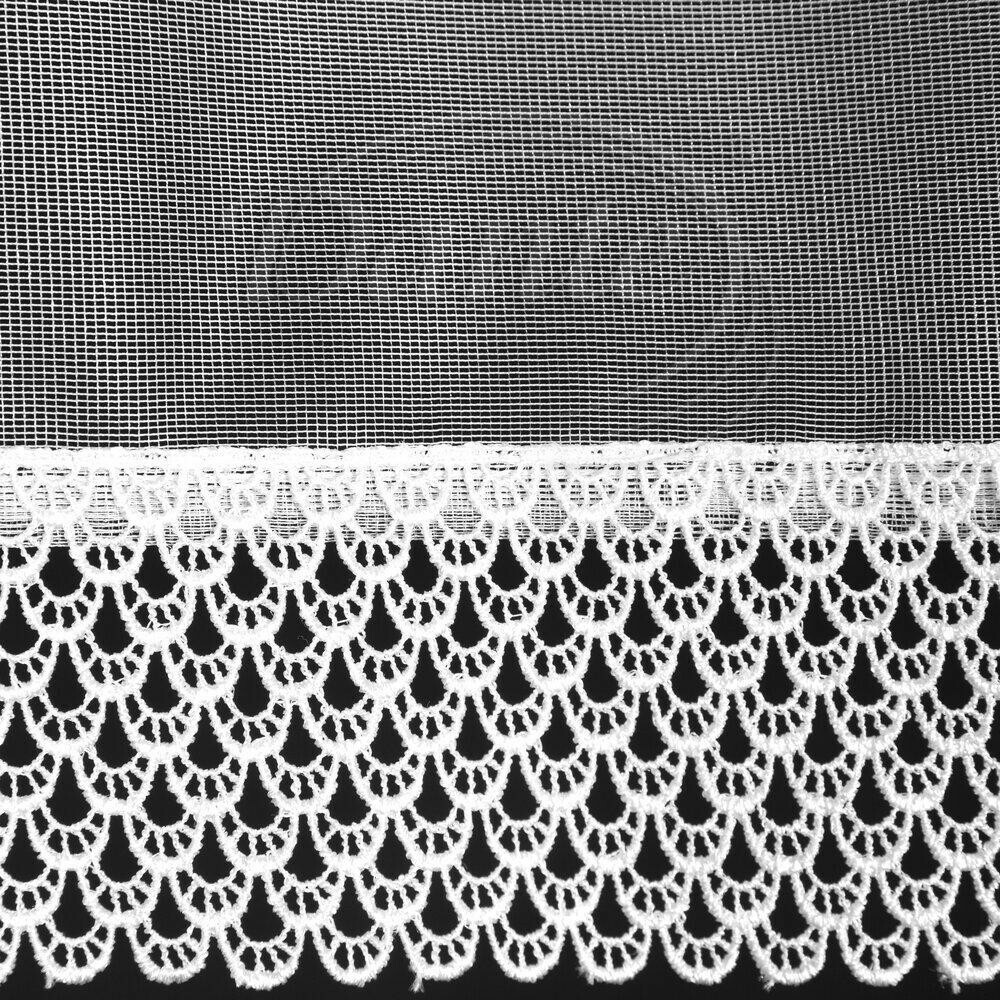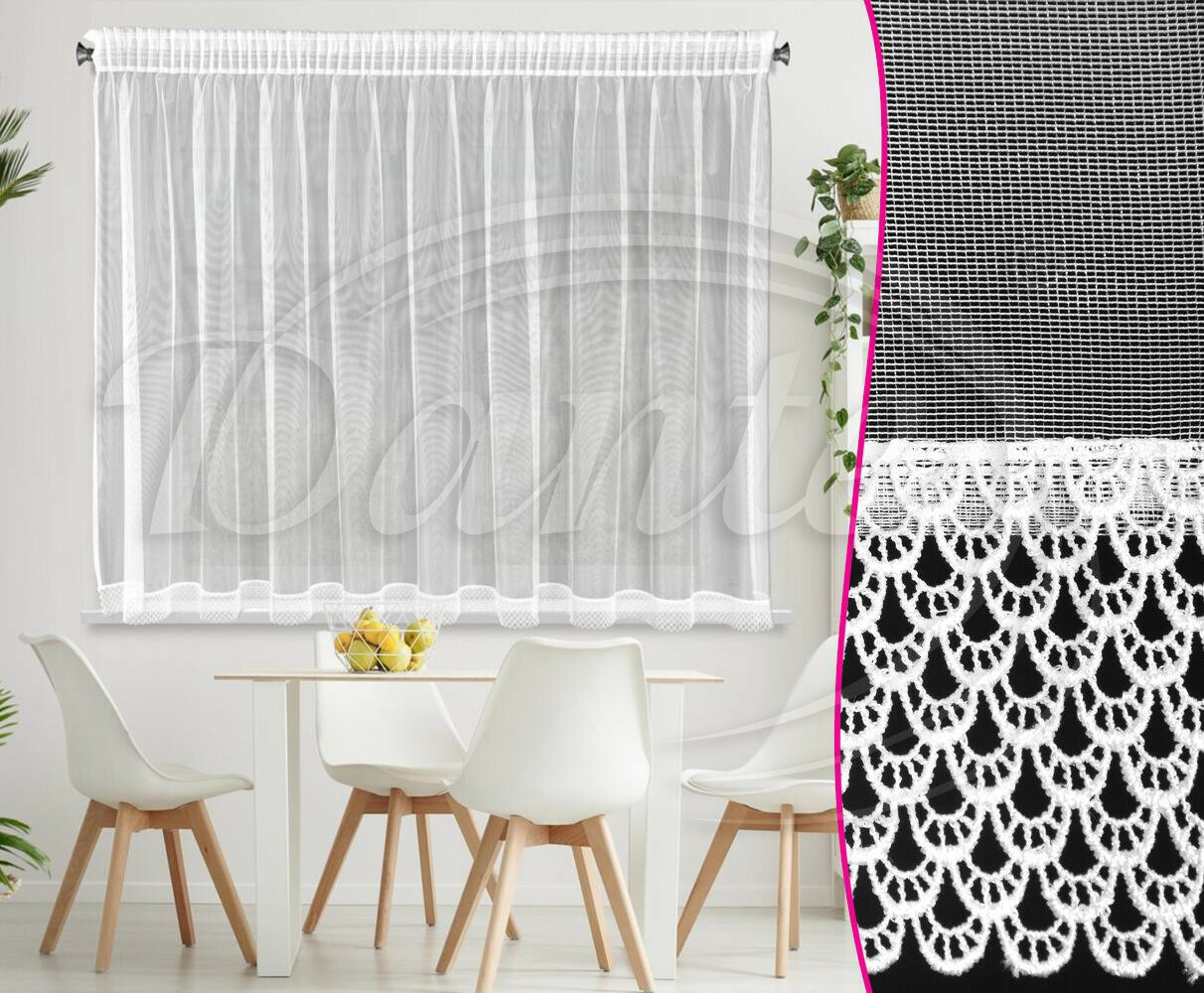 - Romantická bílá záclona zdobená bohatou krajkou v dekoru vějířků dodá Vašim oknům elegantní vzhled.