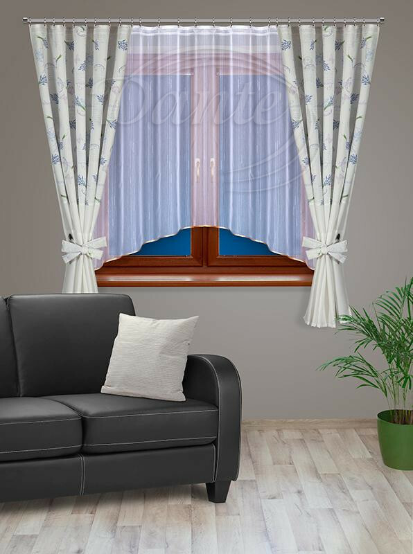 - Set obsahuje dva kusy závěsu a dvě stužky. Záclona na obrázku není součástí setu, je možné objednat ji pod názvem Dakota